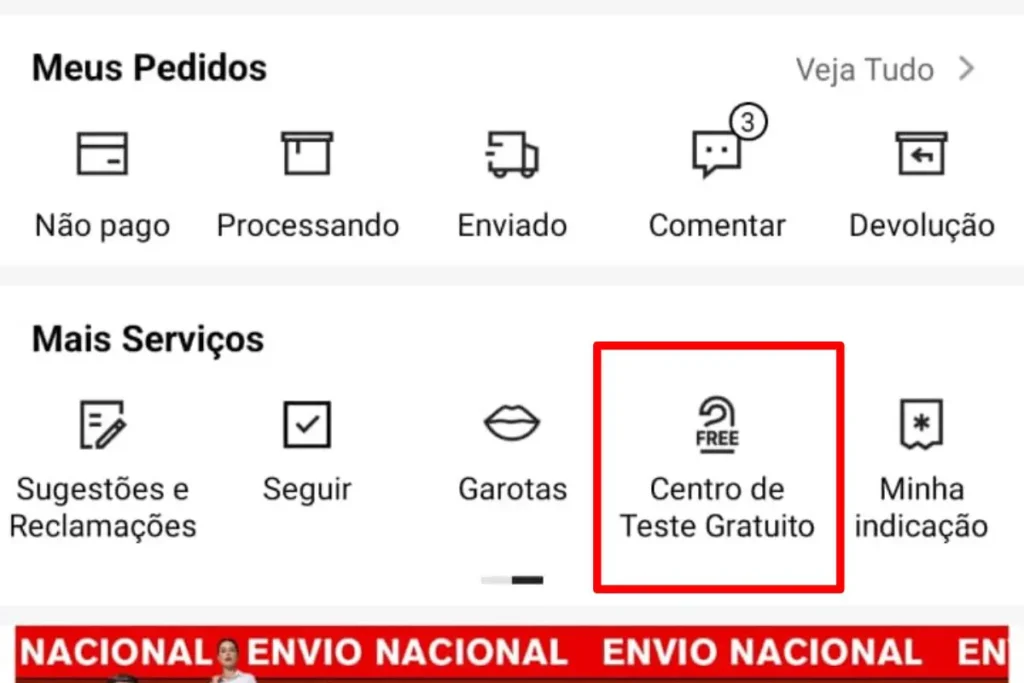 A lista aparece no Centro de Teste Gratuito, e você escolhe até onde deseja ir. Cada pessoa marca o item preferido e entra no sorteio ao lado de quem fez a mesma seleção. Quando o nome aparece entre os escolhidos, o item segue para o seu endereço, pronto para ser experimentado sem pressão.